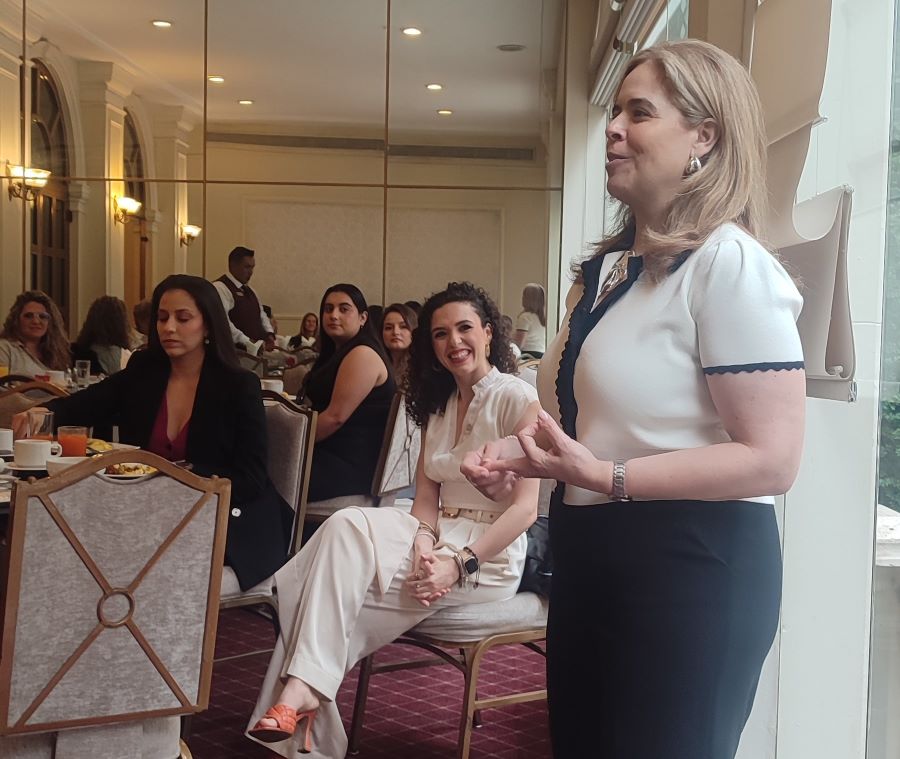 “En 2025, cumplimos 20 años con la empresa, empezamos en mi casa con mi familia y mis papás, mi mamá me ayudó mucho con las fórmulas, todo empezó realmente como un hobby porque me gusta mucho la cocina, yo preparaba salsas con tamarindo y mis amigas me decían por qué no nos vendes, y así comencé a vender primero para mis amigas y después para otras personas”, expresó con alegría durante la charla en la reunión de la Asociación Mexicana de Mujeres Jefas de Empresa.