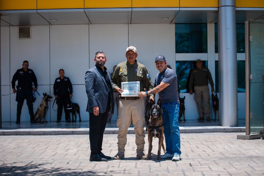 EMPRESAS MONTERREY, 3 de Septiembre de 2025.- Gracias a que su labor garantiza la seguridad de la comunidad universitaria, el programa Binomio K9 de la Universidad Autónoma de Nuevo León (UANL) recibió un reconocimiento internacional de la institución certificadora Hill Country Dog Center.