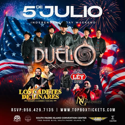 It wouldn’t be a celebration without music, and the holiday weekend will feature a concert by Duelo at the South Padre Island Convention Center. Known for their heartfelt lyrics and signature norteño sound, Duelo brings their «El Desafío Musical» tour to the Island for a night of unforgettable music.