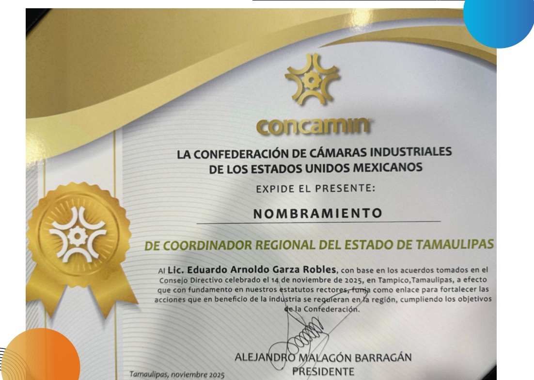La designación del A.A. Lic. Eduardo A. Garza Robles representa un paso decisivo para fortalecer la presencia de Tamaulipas dentro de la agenda industrial del país. Su liderazgo permitirá impulsar: