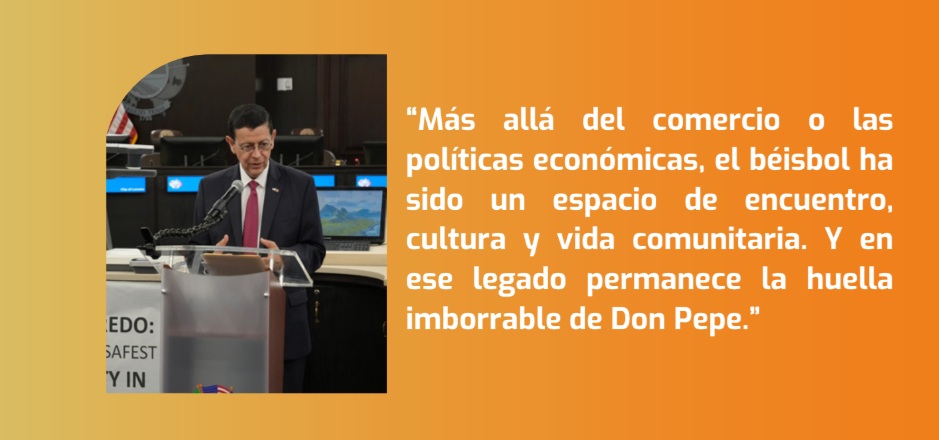 Recordó que, “Más allá del comercio o las políticas económicas, el béisbol ha sido un espacio de encuentro, cultura y vida comunitaria. Y en ese legado permanece la huella imborrable de Don Pepe.”